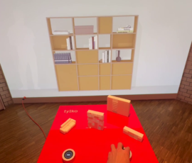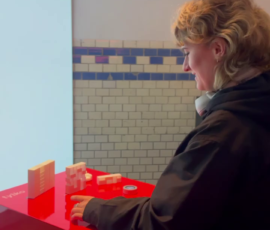 Visitors begin by placing 3D printed miniature furniture models onto a wooden surface with a hidden RFID reader. Each piece is recognised instantly, loading the corresponding furniture model into the interface ready to be configured.