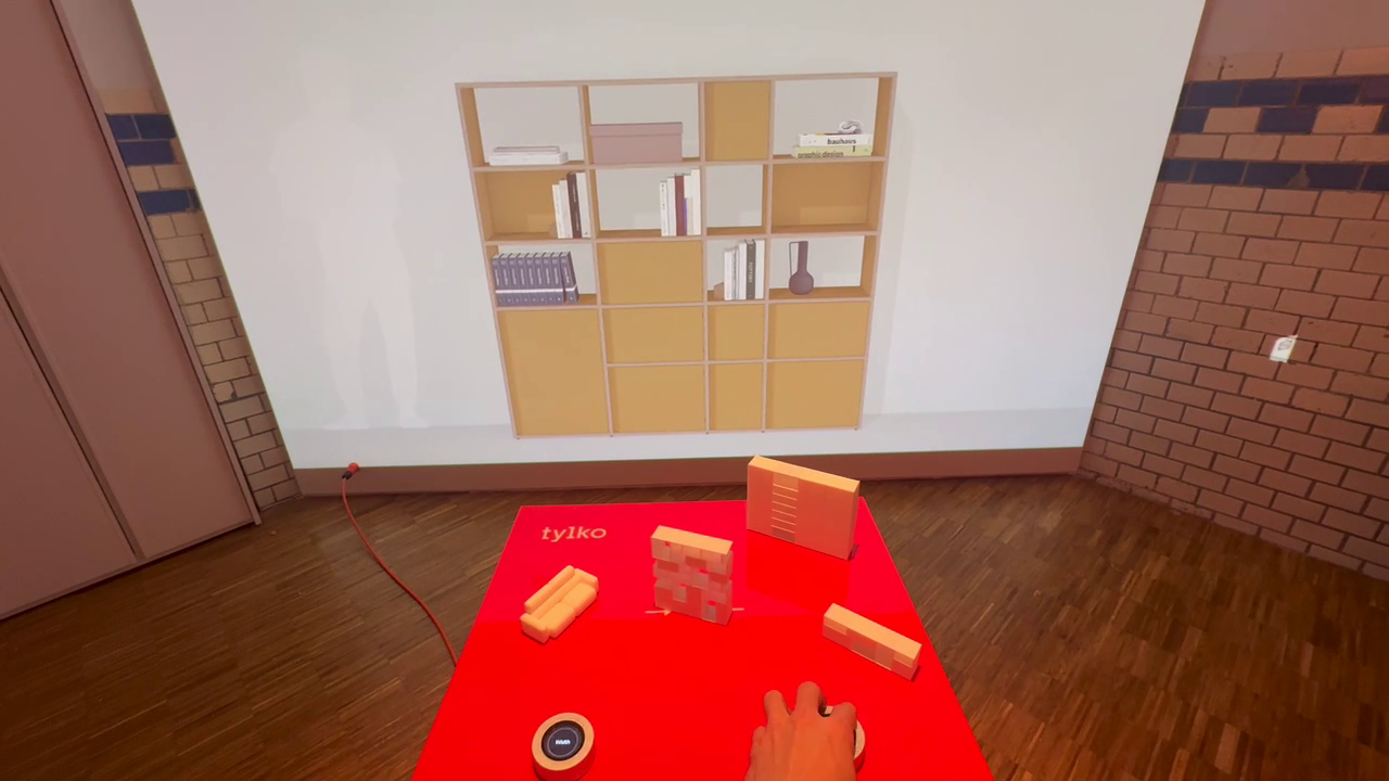 Visitors begin by placing 3D printed miniature furniture models onto a wooden surface with a hidden RFID reader. Each piece is recognised instantly, loading the corresponding furniture model into the interface ready to be configured.